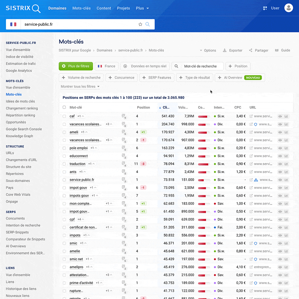 Tracker vos positions avec SISTRIX
