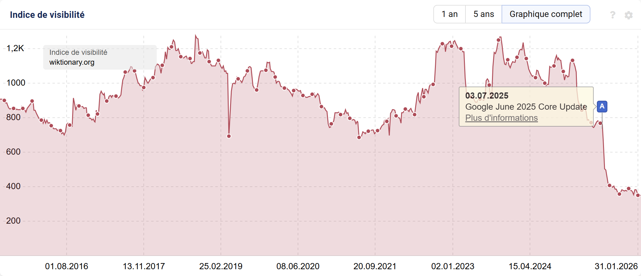 Wiktionary enregistre l’une des pertes relatives les plus importantes de 2025, consécutive au Core Update de juin (déployé en juillet).