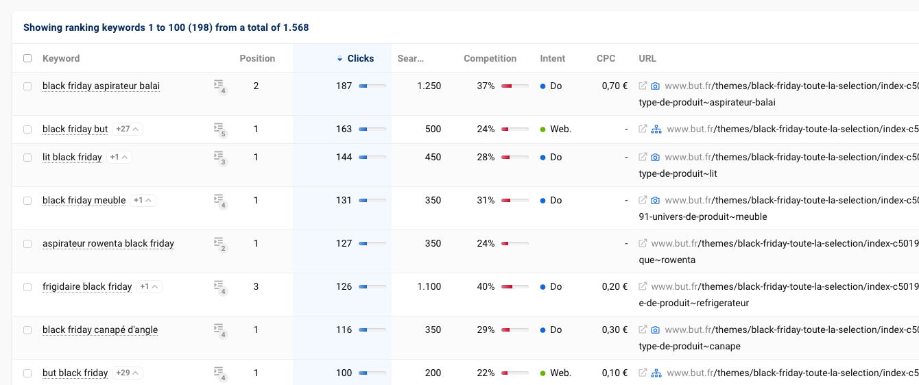 2. Rajouter Black Friday à la fin des mots clés avec la plus forte volumétrie