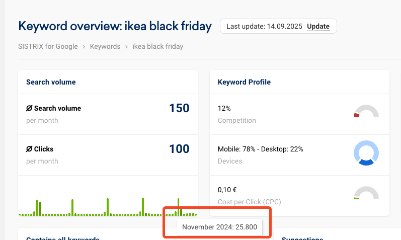 Profitez de 14 jours d’essai gratuit, sans engagement, avec un accès complet aux données et fonctionnalités : Essayez SISTRIX gratuitement