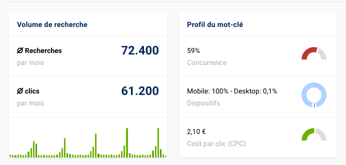 Si un volume de 2.000 peut paraître faible, n’oubliez pas que certains sites peuvent avoir des dizaines voire des centaines de catégories. À échelle, une opportunité énorme et sans la concurrence du principal acteur.