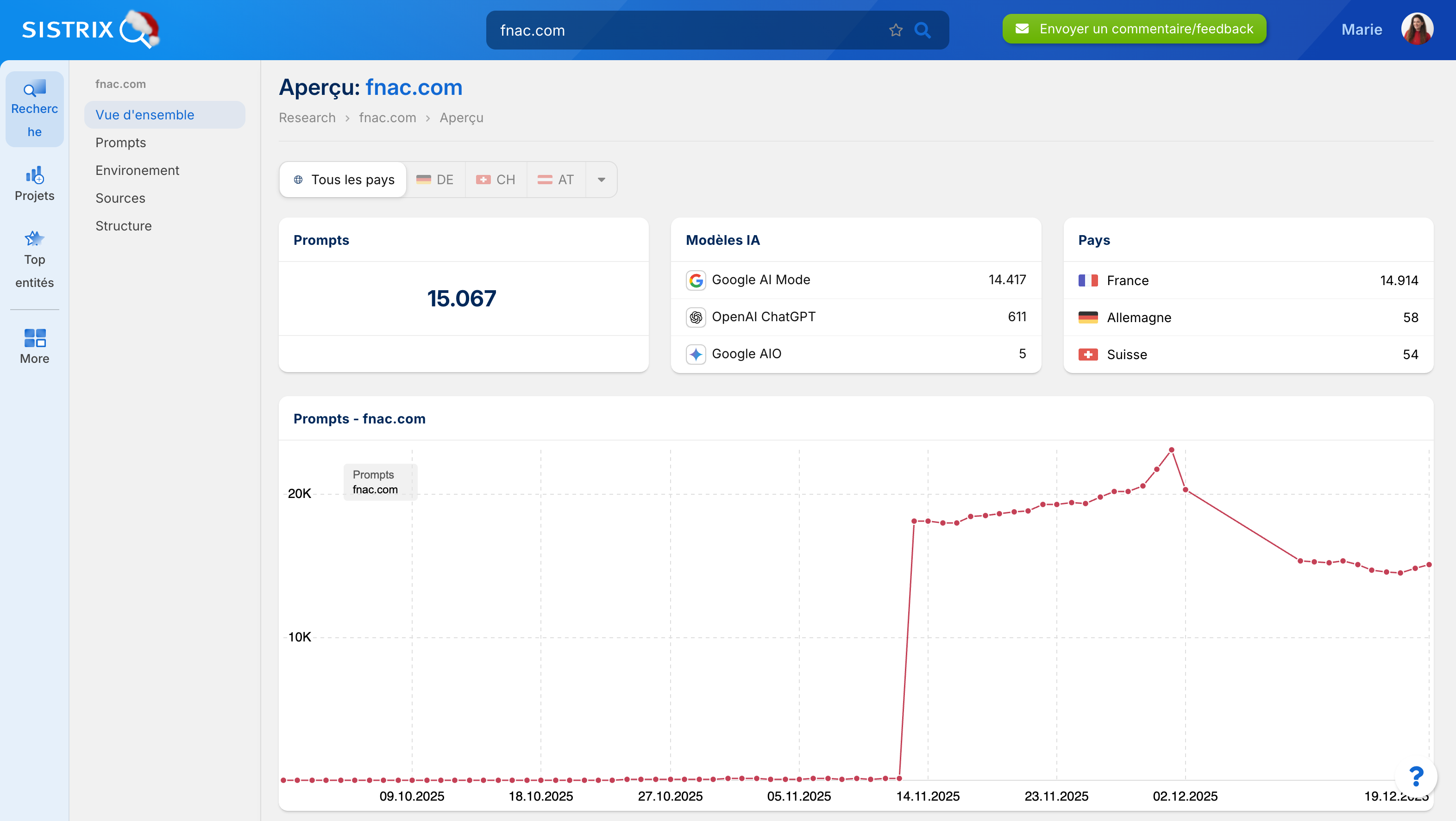 Grâce à la version bêta de AI/Chatbot, nous avons intégré les données de l’AI Search à notre catalogue, tout en respectant les standards de précision qui font la renommée de SISTRIX. Nous n’avons pas pour autant délaissé nos solutions pour Google et Amazon. Voici le détail des nouveautés de l’année écoulée.